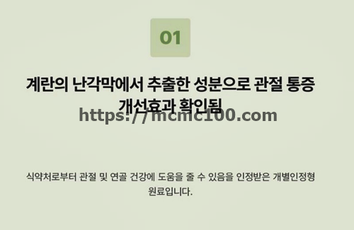 중장년층을 비롯해 관절 건강을 걱정하는 많은 사람들이 난각막 효능을 높이 평가하고 있으며, 건강기능식품으로도 인기가 높아지고 있습니다.